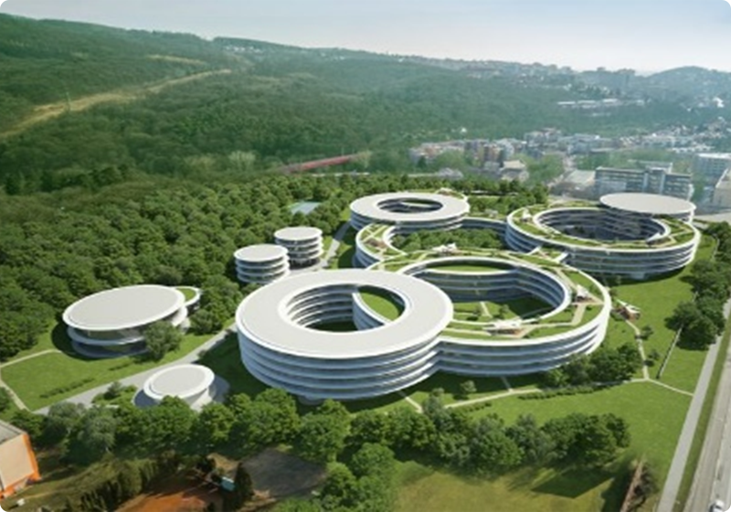 친환경 산업시설과 , 업무 연구 시설을 지원하는 비즈니스 호텔과 시니어