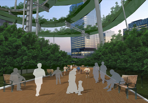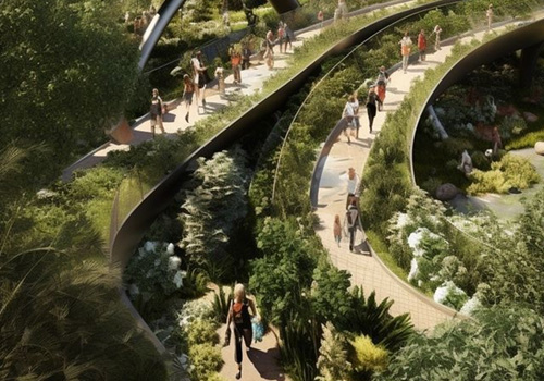 - 수직공원을 기반한 입체형 그린 데크 보행로 계획